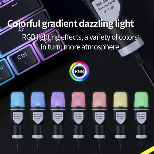 Portable USB Microphone RGB Microfone Condensador Wire Gaming Mic for Podcast Recording Studio Streaming Laptop Desktop