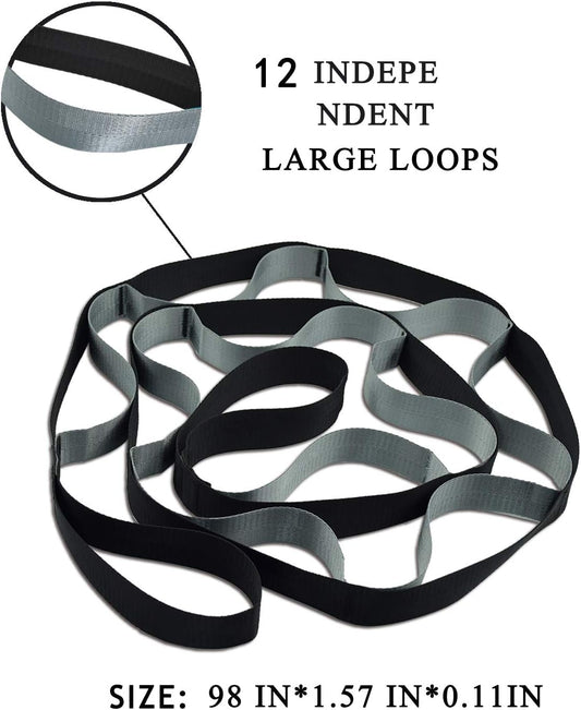 Yoga Straps Stretching Strap with 12 Loops Workout Poster, Straps for Stretching Physical Therapy Equipment Long Stretch Out Bands for Exercise, Pilates and Gymnastics for Women Men